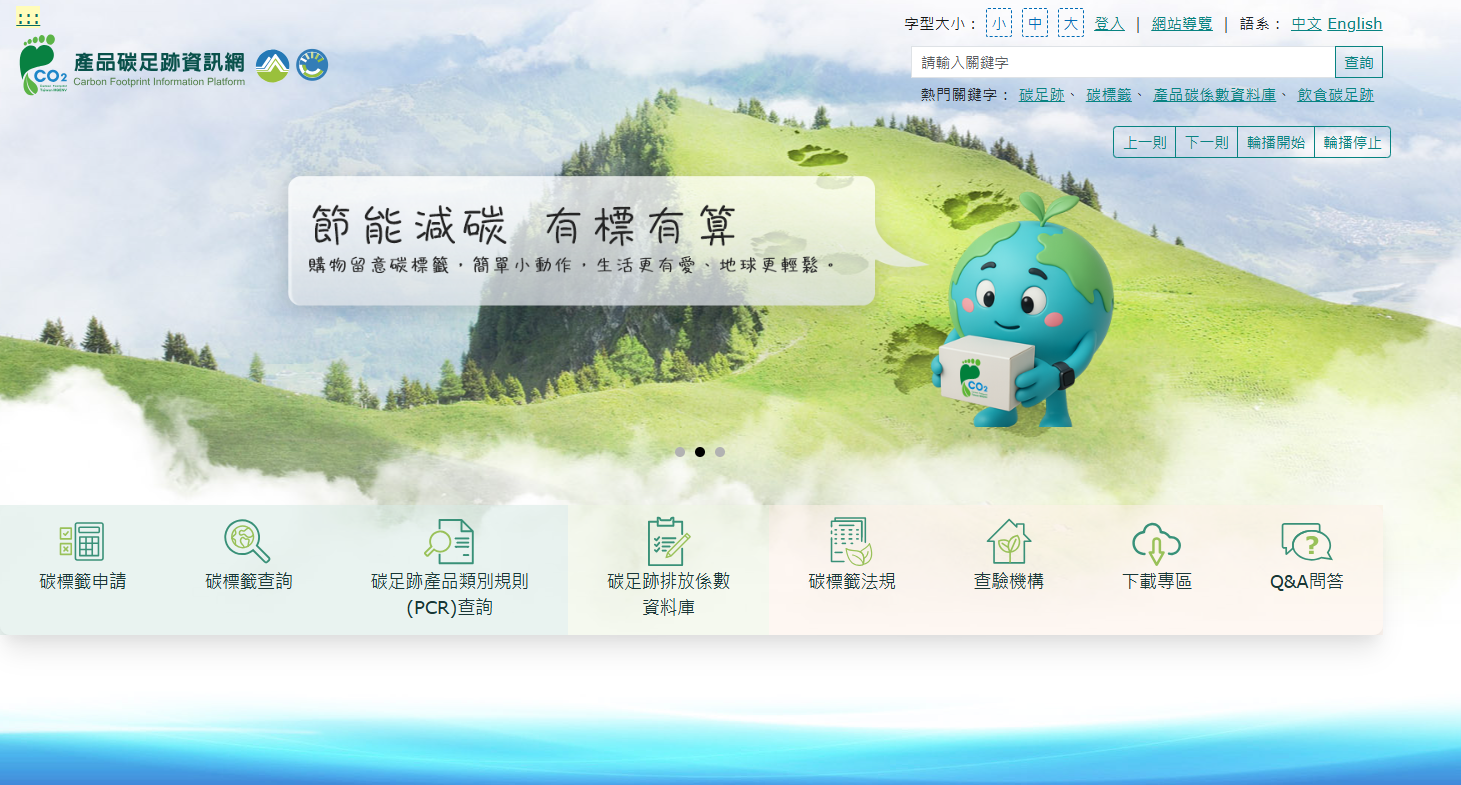 提供民眾查詢產品碳足跡標籤資訊、碳足跡係數及產品類別規則